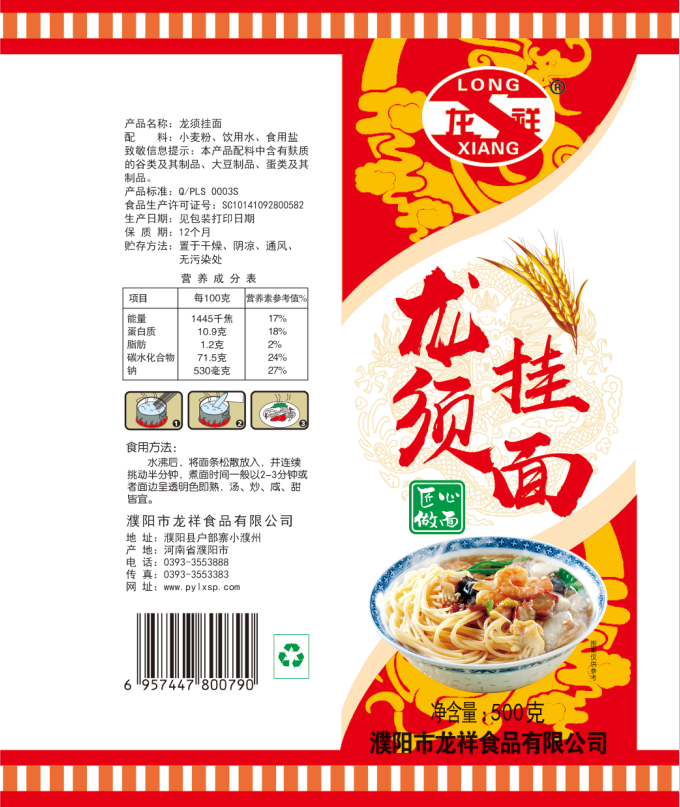 濮陽市龍祥食品有限公司位于河南省濮陽縣戶部寨鎮(zhèn)小濮州,始建于1994年,前期投資200萬元,經(jīng)過幾年的努力,大力開發(fā)市場(chǎng),由于市場(chǎng)的需求量急劇上升,出現(xiàn)供不應(yīng)求,于2004年擴(kuò)建,建成一座新型的現(xiàn)代化面粉加工企業(yè),并擁有全國(guó)先進(jìn)全自動(dòng)生產(chǎn)設(shè)備一套,產(chǎn)量由以前的100噸/天,提高到現(xiàn)在400噸/天。 2012年再次擴(kuò)大規(guī)模申請(qǐng)為濮陽市龍祥食品有限公司,注冊(cè)資金500萬元。2012年又投資800萬元新建掛面生產(chǎn)線一條,日產(chǎn)掛面50噸。龍祥食品有限公司現(xiàn)有職工120余人,總工程師1人,專業(yè)技術(shù)人員10人,經(jīng)濟(jì)師1人,會(huì)計(jì)師1人,銷售人員2人,優(yōu)秀專業(yè)人員20余人。  龍祥公司自創(chuàng)建以來,社會(huì)效益十分可觀。公司一直以“今天的質(zhì)量,明天的市場(chǎng)”為信念,“一切為了客戶需求,竭誠(chéng)追求完美品質(zhì)”為企業(yè)宗旨,走專業(yè)化經(jīng)營(yíng)和職業(yè)化管理的路子。